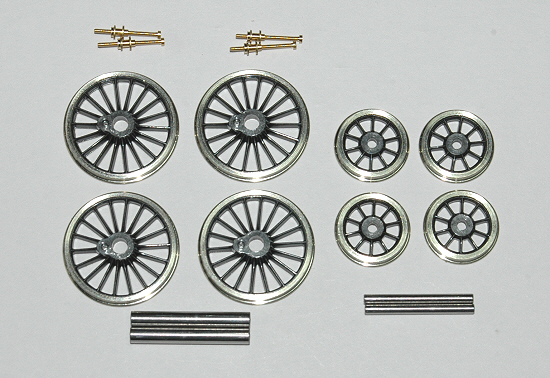 The modeller will have to assemble wheels to axles, make their own arrangements to earth the required wheels to the axles and make arrangements for any other electrical pick-up required, fit the original drive gear to the axle where necessary and make any modifications to get the wheels to clear any obstructions.